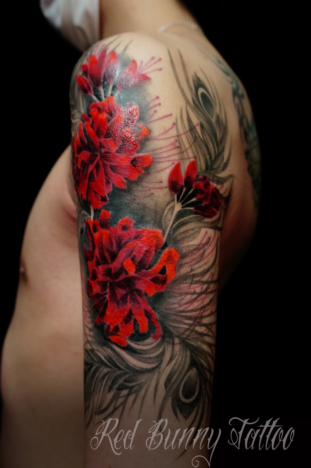 tattoo phoenix feather spiderlily 鳳凰 羽 彼岸花